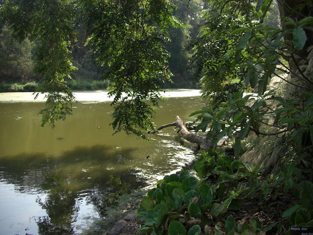 | Lake at Fitzroy Gardens turning green. It returns to normalcy as the season changes. |